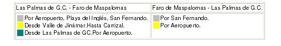 В пути автобус заезжает в разные населенные пункты. Вот пример для номера 5 Las Palmas de G.C. - Faro de Maspalomas