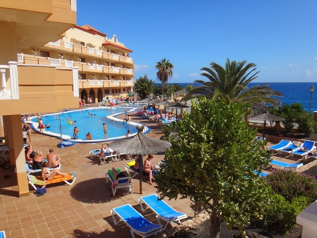 Добавляю отзыв об отеле. На Фуэрте мы останавливались в поселке Калета де Фусте,в отеле с длинным названием Suite Hotel Elba Castillo San Jorge & Antigua (три звезды). Собственно, отель состоит из двух частей - San Jorge и Antigua, мы жили в Antigua(у каждой - свой вход и свой ресепшн).  Номера довольно просторные: гостиная с мини-кухней и отдельная спальня. Мини-кухня оборудована не плохо, хороший набор посуды, включая сковородку и пару кастрюль. Правда, холодильник уж больно маленький и весьма побитый жизнью - морозилка подтекала, некоторые полочки отломаны. Очень порадовала кровать - редко в отелях она бывает такой мягкой. И еще она была просто огромной, свободно помещались втроем с ребенком 4 лет. В отеле достаточно хорошая звукоизоляция - топот, голоса, шум воды и прочие намеки на присутствие соседей практически до нас не доносились.  Уборка в отеле была очень средненькая, пол постоянно оставался грязным. И полотенца, которые в этом отеле выдаются, давно пора бы отправить в помойку - свой изначальный белый цвет они утеряли, а некоторые экземпляры были даже дырявыми. Это главная претензия. Номер нам достался с видом на улицу, хотели было поменять на другой, с видом на море, а потом передумали. Спальни тех номеров, у которых с балкона вид на океан, выходили окнами во внутренний дворик, где по вечерам проходили шоу. А у нас всегда было тихо. При этом можно было вечерком выйти в общий открытый коридор и порадовать себя океаническими видами. Из этого коридора вечерами я несколько раз наблюдала, как служащий в респираторе выливает в бассейн ведро хлорки. Желания искупаться в бассейне (которого и так-то особо не было) после этого окончательно улетучилось. Но народ активно купался.  Питались мы самостоятельно, в ресторан не ходили. В первый день посетили мини-маркет при отеле - выбор там очень скудный, имеет смысл покупать лишь воду в канистрах, чтобы далеко не ходить. Ближайший HiperDino - довольно большой - находится примерно в минутах 8 хода от отеля. По расположению: отельный комплекс расположен на самом краю поселка (том, что ближе к аэропорту), далее за ним других отелей уже нет, в стороне от улиц с ресторанами и барами, но до этих улиц пешком - буквально пара минут. Отель стоит на скалистом берегу океана. Вдоль берега идет широкий променад со скамеечками. По нему минут за 20 неспешным шагом можно дойти до бухты с пляжем. Но "напрямки" через поселок путь до пляжа занимает меньше времени.  Сайт отеля