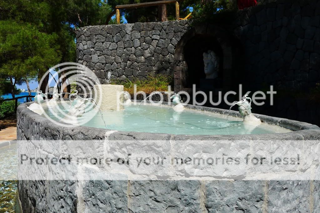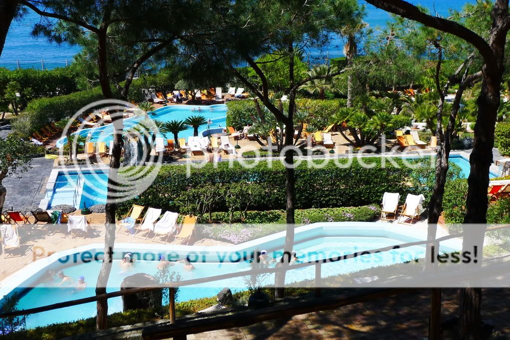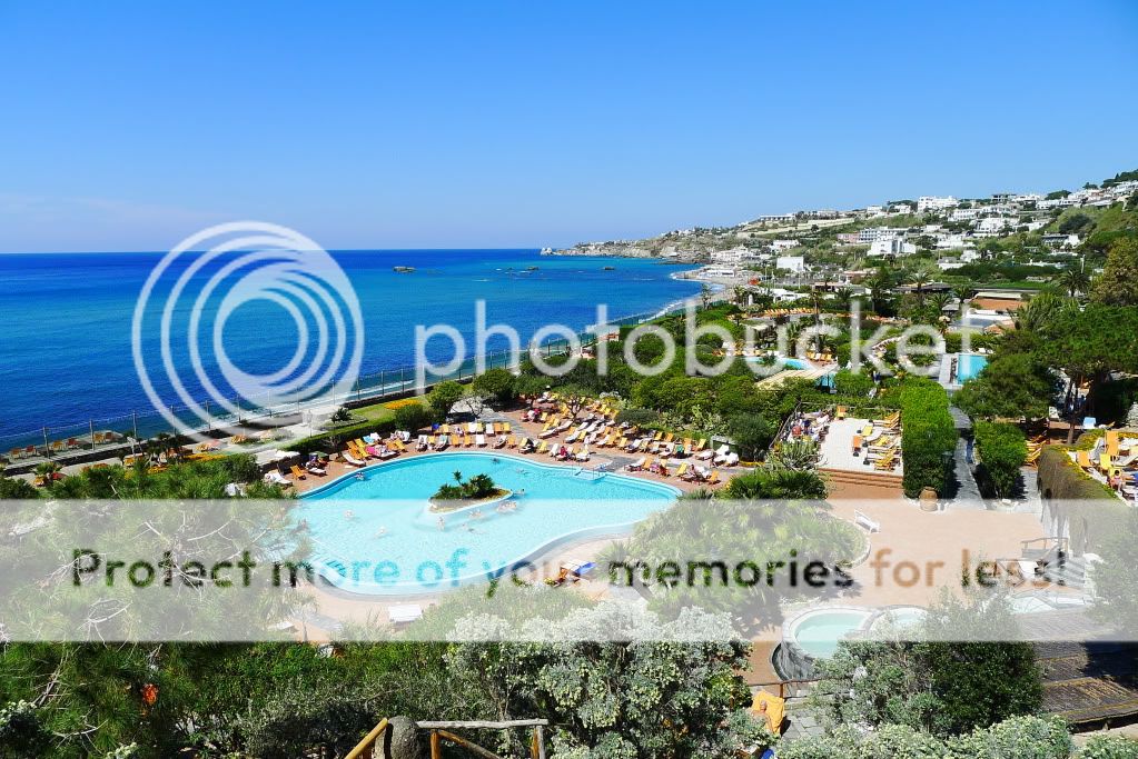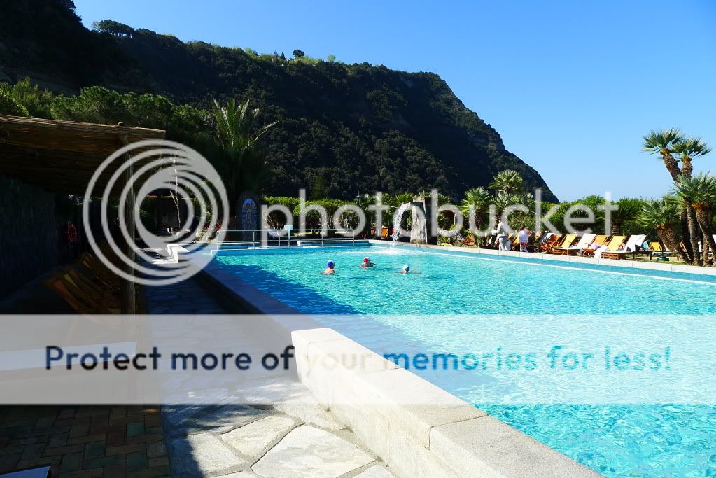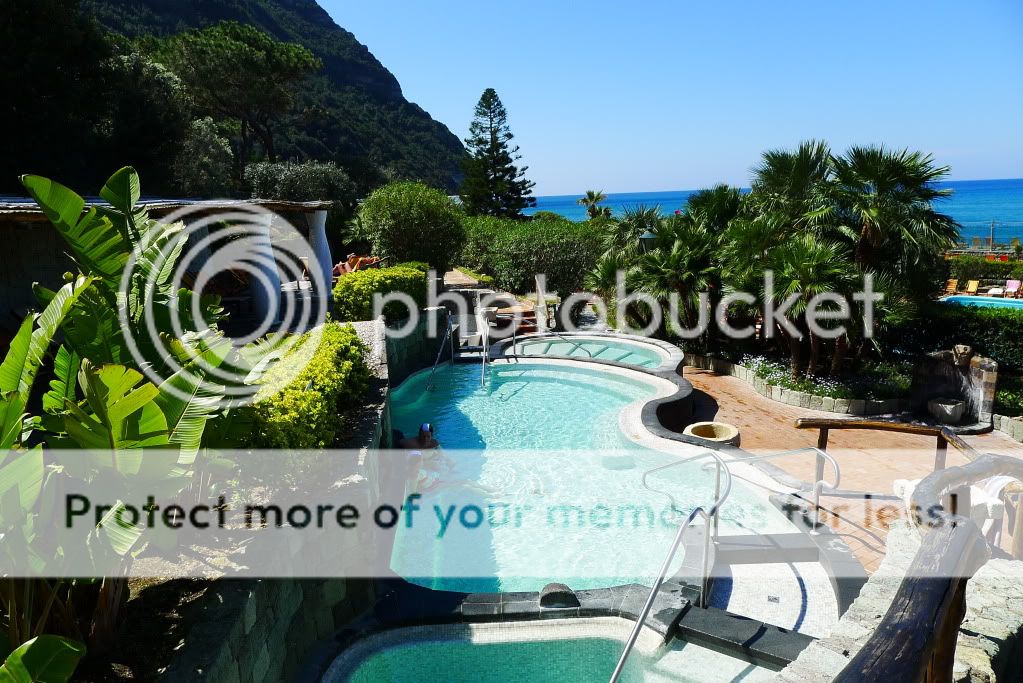 Так, добрались до термальных парков. Их здесь штук 10 точно. В начале апреля были открыты два основных - Сады Посейдона и Негомбо. Мы посетили только первый, т.к. времени было мало, а погода не стабильной. Парк расположен к югу от Форио непосредственно на пляже. Он закрыт от ветра огромными скалами (мыс Императора), а солнце здесь светит вплоть до заката. Сады Посейдона, это термы с двенадцатью природными источниками, которые окружает природа. В каждом бассейне своя температура воды. По всей территории по специальному желобу течет вода, температура которой 90 градусов. Есть закрытый бассейн, детская зона, олимпийский бассейн с обычной водой и сауна наверху в скалах в природной пещере. В главном корпусе, где гардероб и раздевалки, есть медицинский центр. Там проводятся консультации и многочисленные процедуры. Посещать термы можно как самостоятельно без консультаций врачей, а можно предварительно пройти консультации. Все зависит от целей посещения. Мы были с ознакомительно-оздоровительной "экскурсией", но очень много людей едут на остров и посещают термы для лечения различных заболеваний.