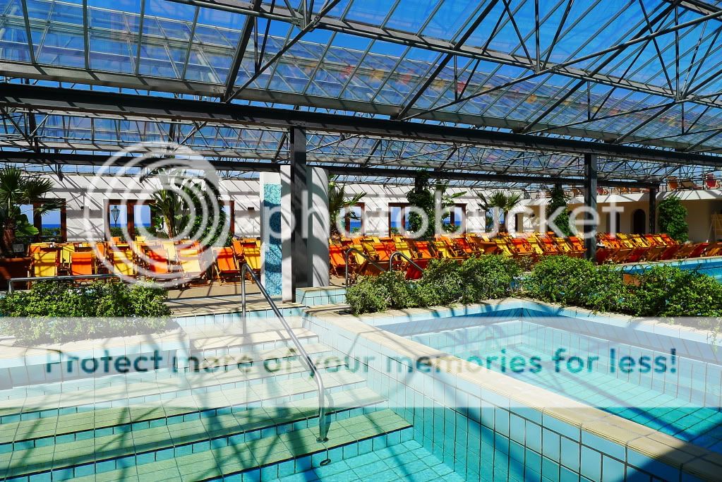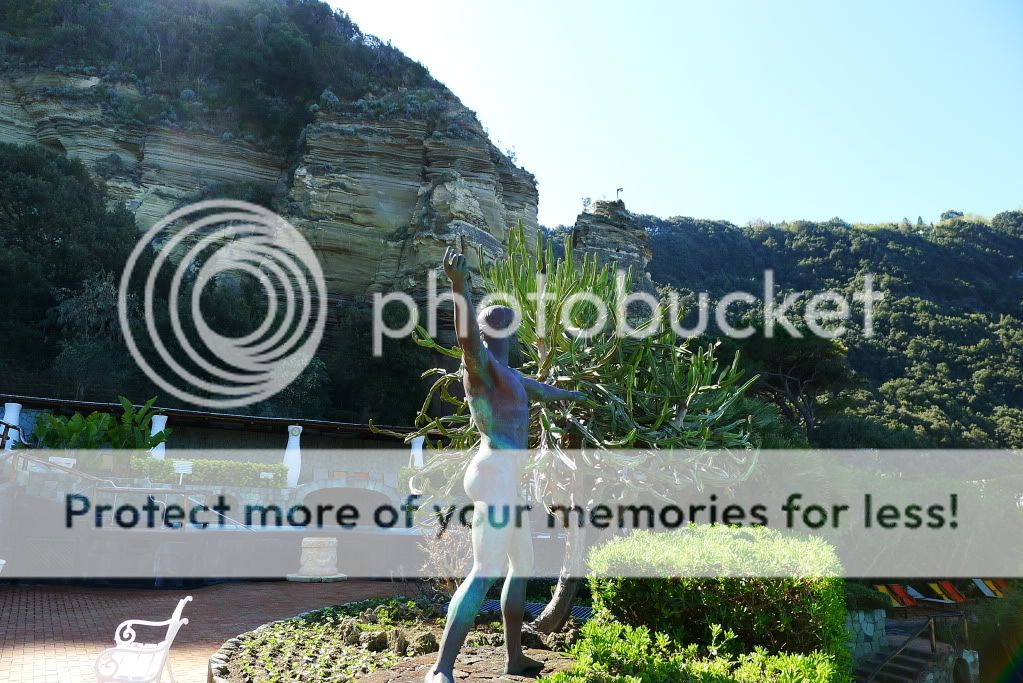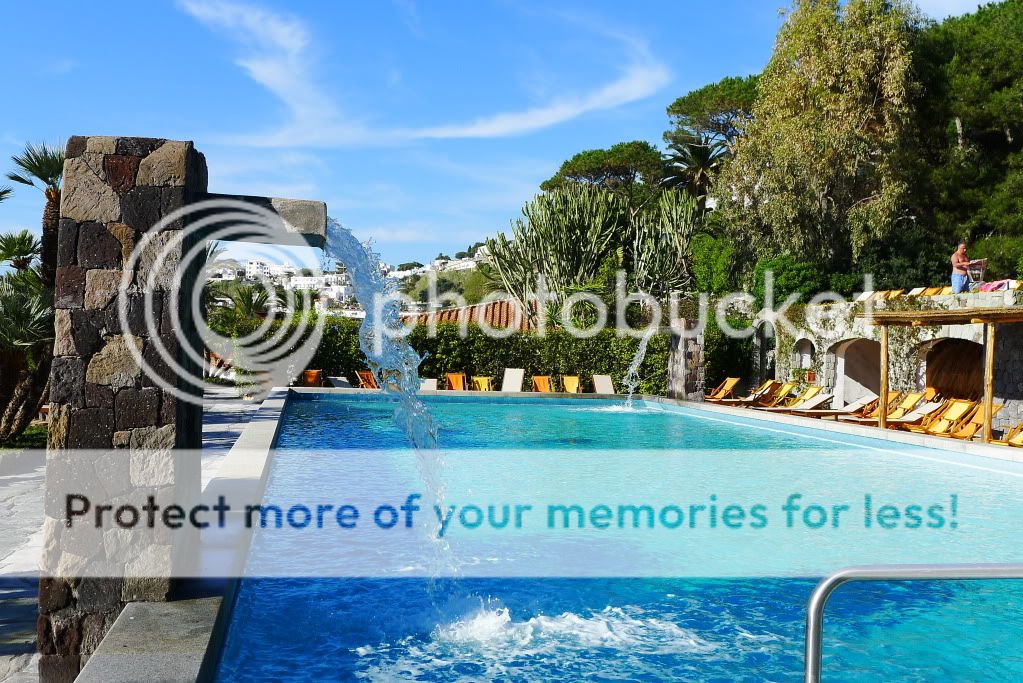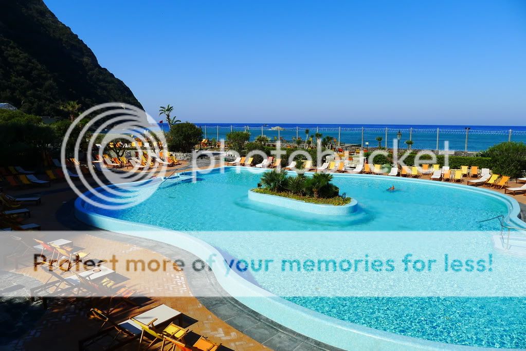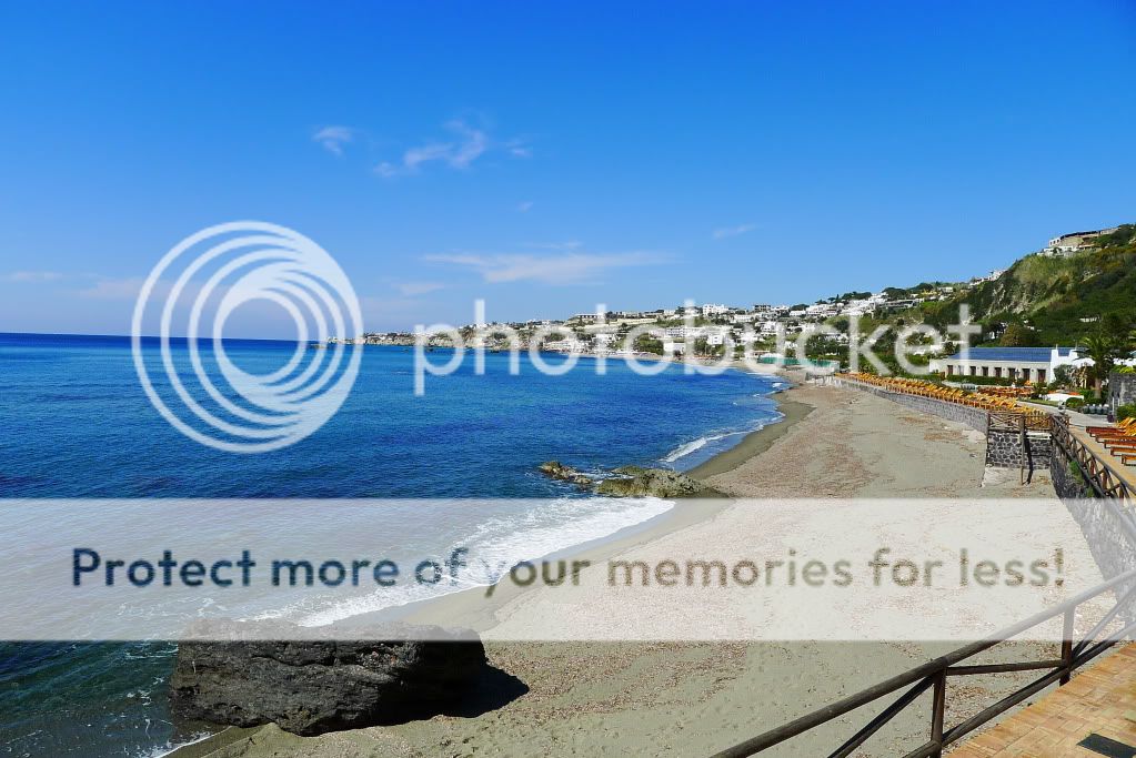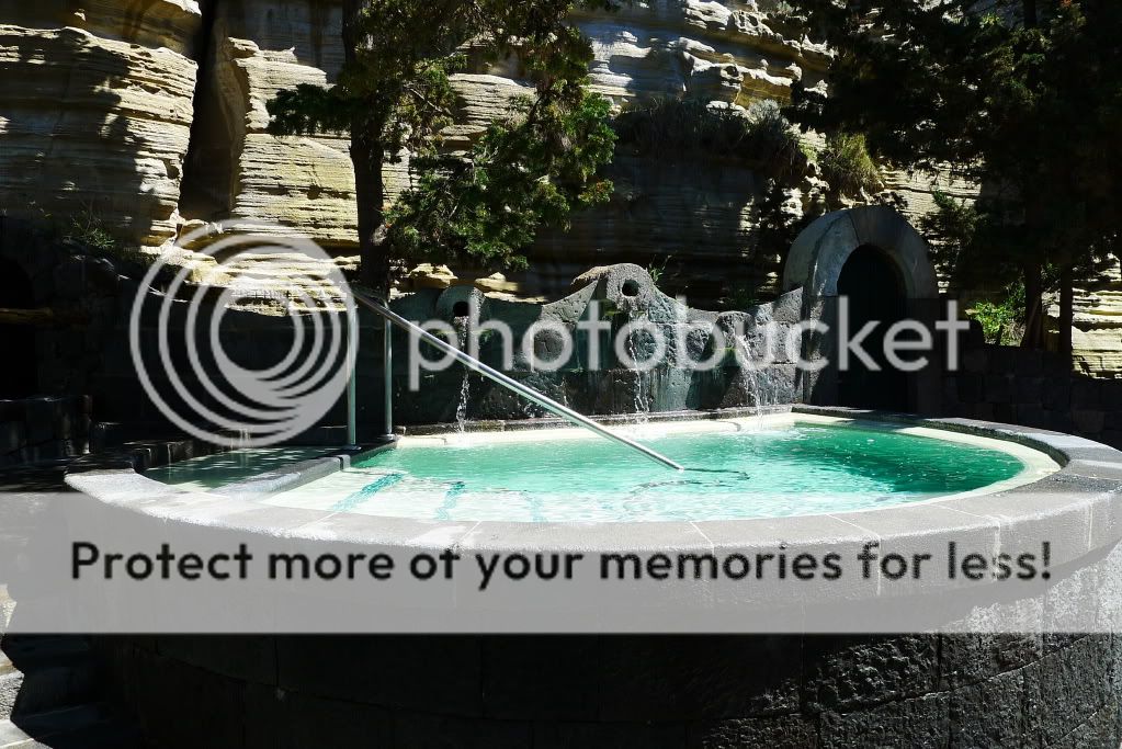 Так, добрались до термальных парков. Их здесь штук 10 точно. В начале апреля были открыты два основных - Сады Посейдона и Негомбо. Мы посетили только первый, т.к. времени было мало, а погода не стабильной. Парк расположен к югу от Форио непосредственно на пляже. Он закрыт от ветра огромными скалами (мыс Императора), а солнце здесь светит вплоть до заката. Сады Посейдона, это термы с двенадцатью природными источниками, которые окружает природа. В каждом бассейне своя температура воды. По всей территории по специальному желобу течет вода, температура которой 90 градусов. Есть закрытый бассейн, детская зона, олимпийский бассейн с обычной водой и сауна наверху в скалах в природной пещере. В главном корпусе, где гардероб и раздевалки, есть медицинский центр. Там проводятся консультации и многочисленные процедуры. Посещать термы можно как самостоятельно без консультаций врачей, а можно предварительно пройти консультации. Все зависит от целей посещения. Мы были с ознакомительно-оздоровительной "экскурсией", но очень много людей едут на остров и посещают термы для лечения различных заболеваний.