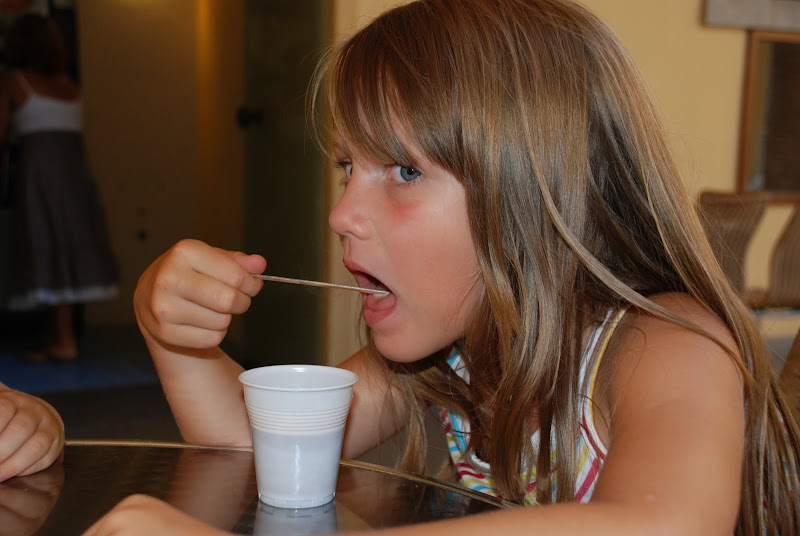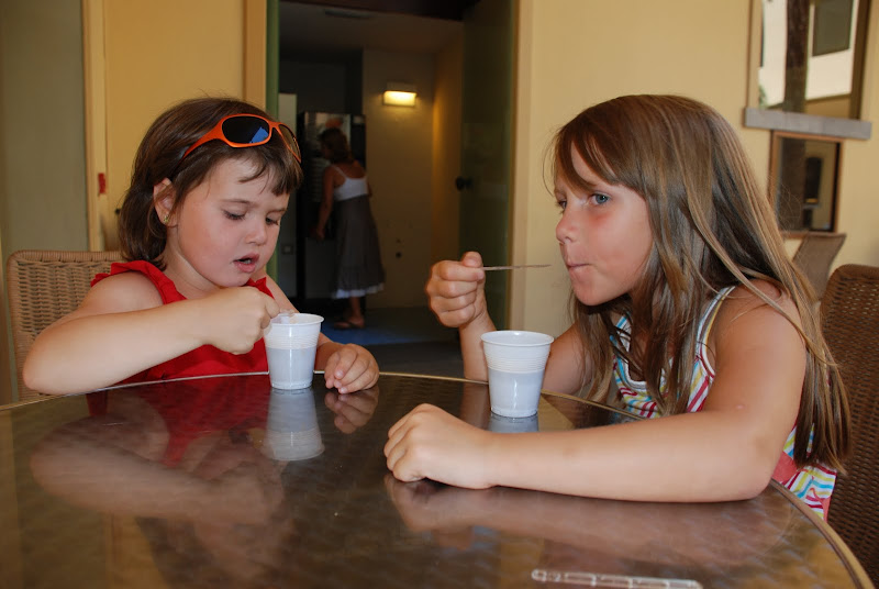 День 55-й. 13 августа. Вот и сегодня я решила, что в Лоро Парк я в третий раз уже не хочу, надо просто отдохнуть. Я отвезла всю семью в Пуэрто, а сама вернулась домой. Нина была в Лоро Парке уже в третий раз, Полина во второй, а ее родители впервые. Парк опять не подвел и никого не разочаровал. Все снова получили массу положительных эмоций. Вечером после всех представлений мои из парка приехали в центр Пуэрто на желтом паровозике. Сбылась мечта девчонок!  Я тоже туда подъехала на машине из дома, и мы пошли гулять по набережной. Прогулки закончились ужином в китайском ресторане (там есть такой на втором этаже, довольно большой). Ели пекинскую утку и много всего другого& Как любители китайской кухни, были несказанно счастливы!  Было очень-очень вкусно, а детям еще и подарки достались по паре сережек с крупными жемчужинами и по паре заколок для волос. Такого мы и не ожидали! Вот счастливые обладательницы подарков.  А это дурачества за столом с упаковками от заколок&   После ужина мы еще прошлись по многочисленным магазинам, торгующим украшениями, и купили себе много всего с оливинами, жемчугом, черной лавой и красными кораллами&