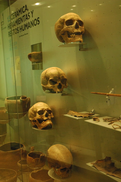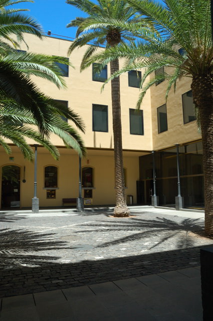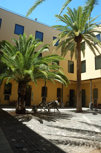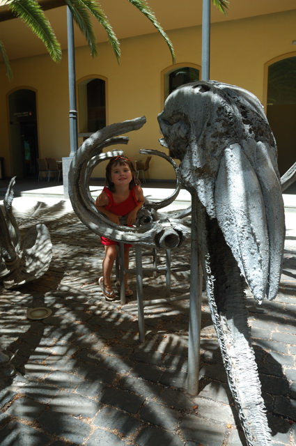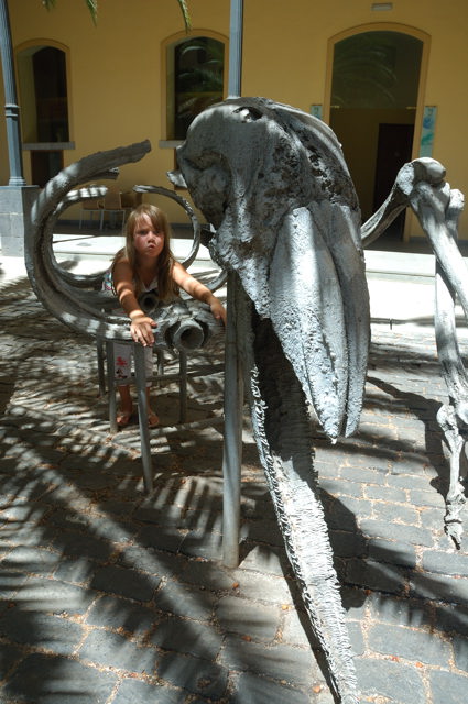 День 53-й. 11 августа. Сегодня с самого утра мы собрались в столицу Санта Крус. Доехали быстро и без приключений, машину поставили под землей около площади Испании (как и в прошлый раз) и сразу пошли в Музей природы и человека, смотреть мумии гуанчей и все остальное. Уже не помню, сколько стоил входной билет в музей, но точно недорого евро 3-4, кажется. А детям бесплатно. В музее, кроме нас, почти никого не было& Внутри приятная прохлада, много интересного, экспонаты разнообразные и довольно привлекательно представлены. Надписи на испанском, но многое можно понять, даже не владея этим языком. Конечно, любопытнее всего было увидеть мумии гуанчей, которые и представляют собой основную достопримечательность здесь. Видимо, понимая это, работники музея составили экспозицию таким образом, чтобы эти мумии было не так уж просто найти.  Не знаю, как другим посетителям, но нам удалось их обнаружить только тогда, когда мы обошли все другие экспонаты, а некоторые даже по несколько раз. Мумии посмотреть очень интересно, но выглядят они зловеще, я бы сказала& Особенно меня поразили мумии младенцев& Я их даже не фотографировала, как-то отпало все желание щелкать фотоаппаратом в этой секции. Дальше несколько музейных фото дворика и экспонатов.