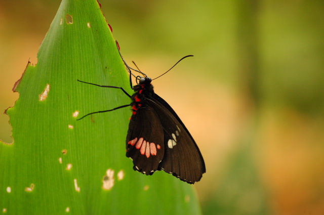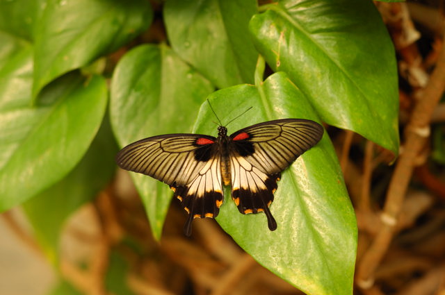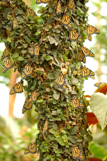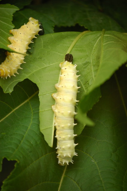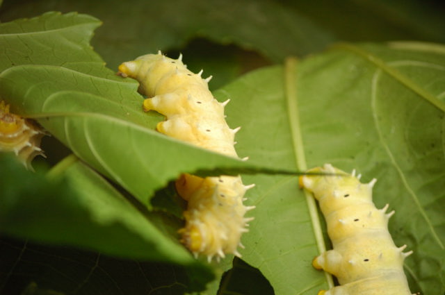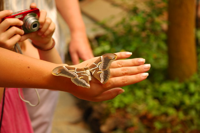 День 12-й. 1 июля. Пляжный отдых это, конечно, хорошо, но хочется и чего-нибудь еще. Все же мы сегодня продолжаем лениться, поэтому просто заезжаем в Икод (по пути на наш пляж). Тут бабочки и Драконово дерево. Мы уже сто раз проезжали мимо, но пока до основных достопримечательностей не добрались. По-моему, самое время их осмотреть. В эту часть Икода мы заехали впервые. Да, со стоянкой для машины тут проблема& Поставили под землей. И первых нашли бабочек! Когда входишь в это помещение, охватывает необыкновенное чувство: все вокруг порхает, дышит теплом и влагой, тропический радужный рай&  С нами завела разговор работница сада. Сначала по-английски, но услышав, что мы между собой говорим по-русски, перешла на русский! Наверное, русская девушка. Она нам много интересного рассказала про сад, про бабочек, про куколок и гусениц. Куколки, например, выглядят обычно, как сухие листья или драгоценные камни. Это у них маскировка такая, чтобы никто не слопал. Вот эта бабочка, сказала нам девушка, ночная, живет только одни сутки, у нее нет ни рта, ни системы пищеварения, она вообще ничего не ест и не пьет& Девушка взяла бабочку и посадила мне ее на руку. Бабочка (ну точно, ночная) была как под влиянием снотворного абсолютно безвольная, мягкая, с нежными лапками&    Было видно невооруженным глазом, как эти жирные гусеницы пожирают листья!