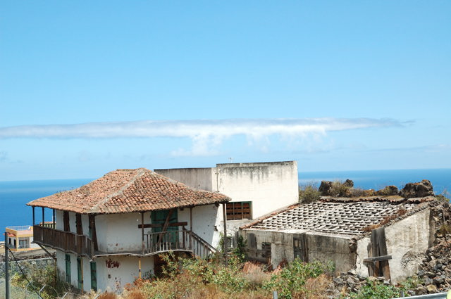 А это, кстати, вход в сад бабочек, вид сверху, с площади у тысячелетней драцены.     Хибары в центре Икода, а над ними что, НЛО?  На Драконово дерево мы полюбовались с площади, подходить к нему не стали. Прошлись еще немного по окрестным улочкам, набрели на фруктовую лавку, в которой купили самые вкусные съеденные нами на острове фрукты. Просто божественный вкус! Мягкие, сочные персики, нектарины, абрикосы, сливы& Потом мы еще 2 раза заедем специально в эту лавку, но оба раза уткнемся в закрытую дверь& Сиеста, может? Надо будет еще попытать счастья, может, удастся застать ее открытой?..