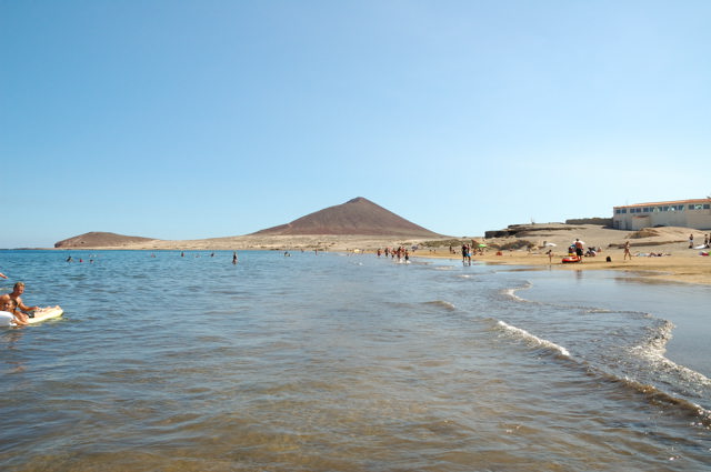 Ближе к выходу мы пытались заманить эту обезьянку, чтобы она посидела у нас на плечах, руках, головах& (к тому времени у нас неожиданно закончились финики, так что заманить хитрого зверька оказалось не так-то просто). Поняв, что она обращает внимание на сумки, карманы, рюкзаки, наша дочка сразу потребовала мой рюкзак себе на плечи, чтобы получить шанс быть затоптанной обезьяньими лапками. План удался!     Остаток дня мы спокойно и лениво провели на пляже Эль Медано. Погода была очень солнечной и тихой, волн почти совсем не было, мы плескались, загорали и радовались своему счастью проводить лето на Тенерифе&