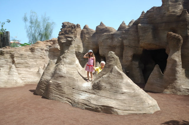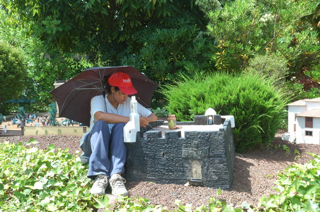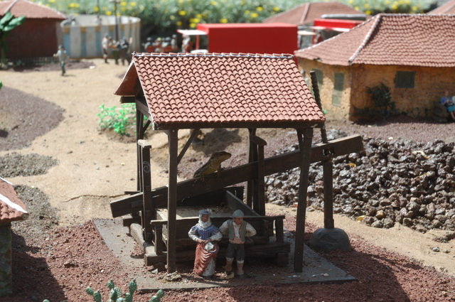 Как любят говорить клоуны в цирке: «А вот и я!!!»  . Всем огромный привет! Почти каждый вечер думаю о том, что вот уже пора, пора вернуться к рассказу (к слову, возвращаюсь я на 77-ую страницу файла; просто не верится, что уже столько написано!)& Вот и настал этот момент. Попытаюсь продолжить, ведь осталось еще столько всего, о чем хочется рассказать. Заодно сама еще раз все это переживу. В последние дни (когда сразу несколько знакомых только что вернулись с Тенерифе и показали свои фото) только и думаю о том, что пока из всех наших путешествий этот остров единственное место, куда мы все трое хотим непременно вернуться. Ну так давайте вернемся, прямо сейчас.  Вернемся в 9 июля прошлого года& День 20-й. 9 июля. Поскольку пляжный день был вчера, сегодня у нас дела.  Первый номер программы «Пуэблочико». В те многочисленные разы, когда мы ездили туда-сюда через Пуэрто, все мелькал знак, указывающий, где же находится этот парк миниатюр. Да и наша Нина с нетерпением ждет его посещения& Доехав до Пуэрто, находим интересующее нас место сразу, не плутая. Ставим машину на стоянку (она не очень большая, но место с краешку все же находится). Называется, «почувствуй себя Гулливером»&  В парке сразу стало понятно, что интереснее всего вглядываться в детали& Столько всего занимательного! Около этой мамули с младенцем еще и детский плач раздавался через динамики. Поневоле начинаешь вертеть головой, чтобы понять, в чем же тут дело.