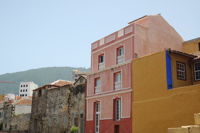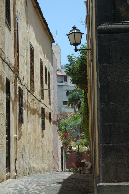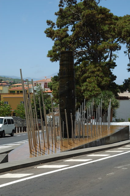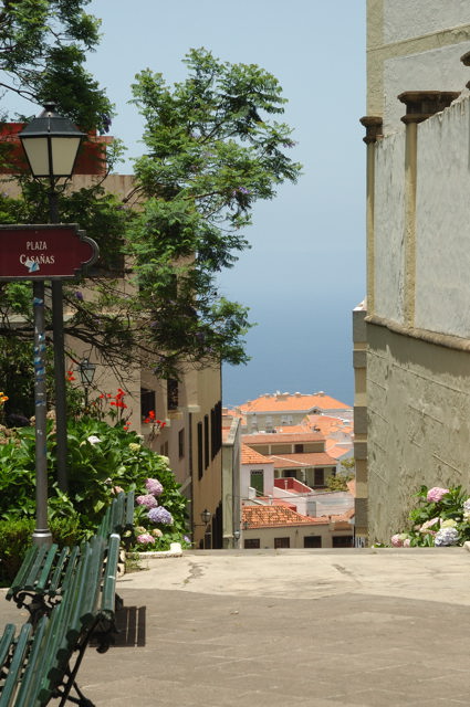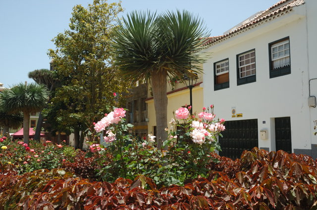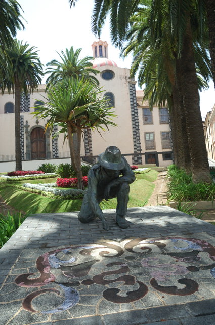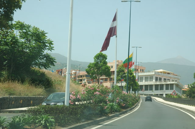 Дальше мы едем в Ла Оротаву. До сих пор еще толком здесь не были, все мимо проезжали& Не перестаю жалеть, что не успели сюда на праздник Тела Господня (в 2009 г. он был буквально за пару дней до нашего приезда на остров)& Если бы увидеть все великолепие ковров из цветов и песка& А пока мы видим флаг Литвы (и Латвии тоже) при въезде в город. Как будто он нас так приветствует. Ощущение, что нам поднесли прямо-таки хлеб и соль!  Ну и ковров все-таки немножко увидели& В каменном исполнении. Почему-то даже не дом с балконами и не другие достопримечательности Оротавы, а именно этот усердный художник, кропотливо выкладывающий свой узор, мне и кажется главным символом городка&  Красивые потаенные уголки, двери, домики, балконы, розы&