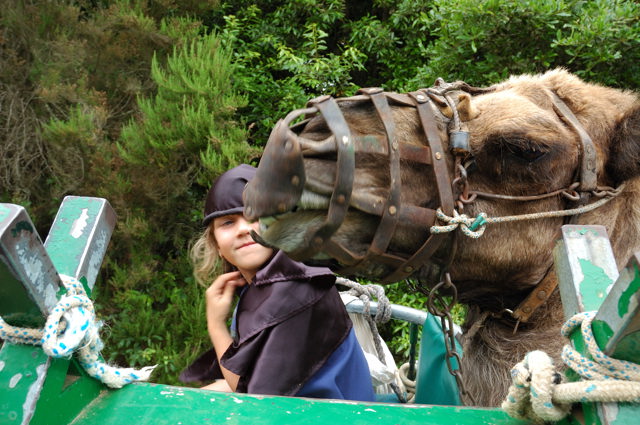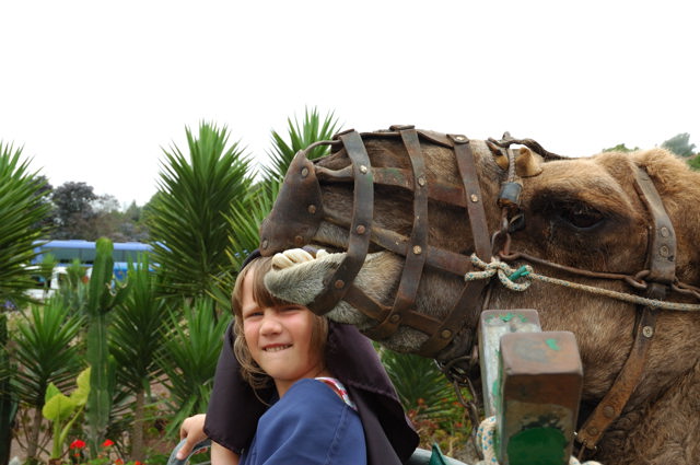 Этот верблюд, кажется, все время норовил поближе к Нине прижаться&  Она всячески уворачивалась. Тут обернулся погонщик, заметил такое невежливое поведение верблюда и строго крикнул ему: «Антонио!». Наш Антонио сразу посерьезнел и отвернулся, как бы говоря: «Я че? Я ниче!..». Тут уж Нина всю оставшуюся дорогу время от времени деловито покрикивала: «Антонио!». Надо сказать, верблюд тут же начинал соблюдать дистанцию.  С этого дня, проезжая мимо этого парка, мы прямо с шоссе все старались высмотреть «нашего друга Антонио»& Еще пара кадров.    По пути домой наша девочка задумчиво произнесла: «Мама, мне показалось, что наши верблюды не очень улыбчивые&»