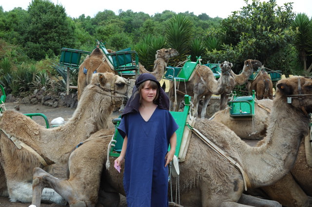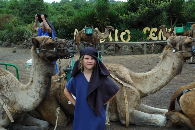 Отсюда мы как будто направились домой, но доехав до Эль Танке, решили проехать еще чуть-чуть и покататься на верблюдах. В том самом месте, которое все проезжают по пути с юга на север. Ждать нам совсем не пришлось, был уже почти вечер, на верблюдах, кроме нас, кататься хотели считанные единицы.  Билет стоит 8 евро (на ребенка 4 евро).  Хорошо, что к этому времени было уже совсем не жарко, пасмурно даже. Так что мы, можно сказать, с ветерком прокатились.  Нас с дочкой посадили на одного верблюда с двух сторон в такие специальные «стулья», а на дочкину сторону для равновесия еще добавили пару мешков с песком. Когда верблюд встает, становится страшновато& Он сначала встает на задние ноги, сильно наклоняясь вперед: начинает казаться, что сейчас вылетишь с этого стула; а потом резко поднимается на передние ноги. Тогда-то понимаешь, какие, на самом деле, верблюды высокие! Животные связаны друг с другом в караван. Впереди идет человек, ведет их, а они идут следом. Правда, голова идущего позади верблюда очень близко!