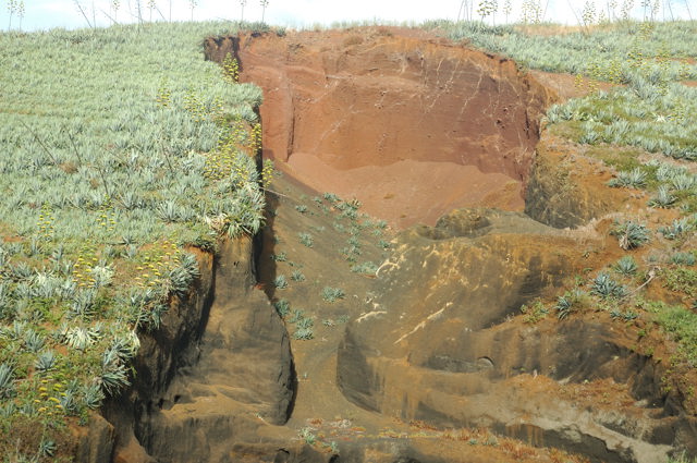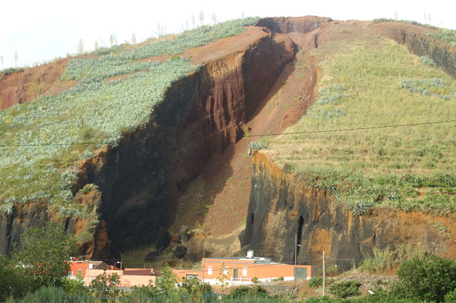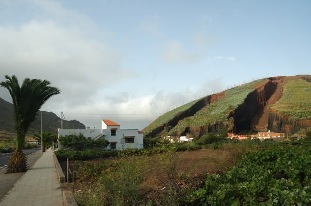 Ну а вот и он. Еще один объект, будоражащий всех и заставляющих теряться в догадках&  С этого мирадора, кстати, начинается пешеходный маршрут к маяку Тено. Там есть указатели. А мы едем дальше, спускаемся к «пирогу», чтобы рассмотреть его поближе.  И заодно его окрестности. Красиво там, спокойно& В таких местах на Тенерифе всегда возникает ощущение того, что ты на краю света, где время давно остановилось& Чувство непередаваемое и очень приятное. По-настоящему расслабляет и позволяет отдохнуть душой.   А это «пирог» ну уж при самом ближайшем рассмотрении. Когда настолько близко разглядываешь его, становится ну ва-а-апще непонятно, как образовалось такое чудо& Кстати, только сейчас заметила, как много алоэ растет на склонах «пирога»...