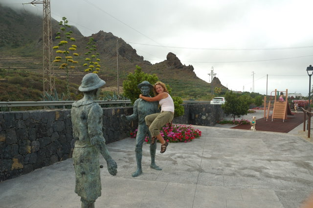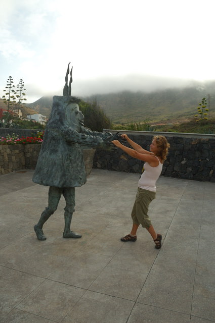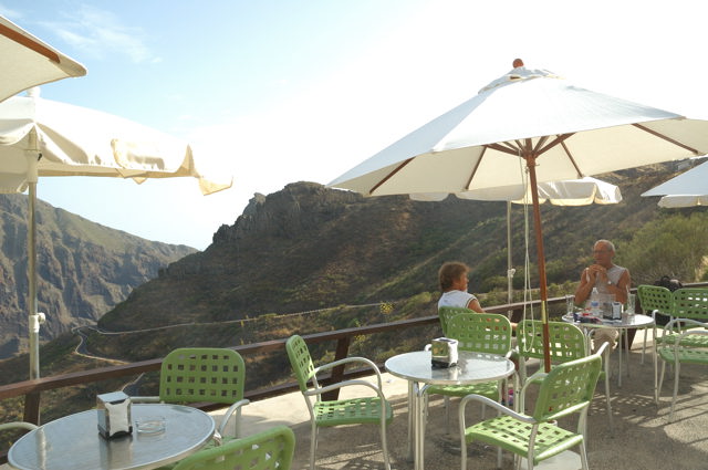 День 47-й. 5 августа. Сегодня Лоро Парк. Ничего писать и не буду про него, и фото тоже у меня новых нет. Я в этот раз даже, наверное, почти и не фотографировала. Мы с Ниной тут уже второй раз, но это не помешало нам насладиться представлениями и просто прогулками по парку. Родителям и Полине тоже понравилось. День 48-й. 6 августа. Сегодня с утра мы побыли дома, ничем особенным не занимались, но мне обязательно хотелось прокатить родителей в сторону Маски. И я подумала, что сама еще не ездила через Маску в Буэнависту. Как раз сегодня у нас есть хорошая возможность исследовать этот новый для всех нас маршрут. Торопиться нам некуда, можно спокойно собраться, ехать, останавливаясь на каждом шагу и наслаждаясь видами на горы. Странно, но сегодня около дома необычно холодно, поэтому я решила, что надо в горы потеплее одеться& Но уже по пути в Маску (а это всего пара десятков километров от нашего дома!) мы почувствовали, какая стоит жара! Вновь проявилась непредсказуемость острова.   Было очень солнечно и очень жарко, но при этом сильный ветер. Проехав Маску, после подъема на следующую гору мы заметили справа у дороги кафе. Остановились освежиться. Место чудо! Тут я пила самый лучший настоящий лимонад в мире! Около бара на стене висел простой листок бумаги, а на нем простой ручкой было написано что-то вроде «У нас есть лимонад собственного производства». Я сразу же соблазнилась, а выпив его, решила, что до отъезда домой надо будет еще сюда приехать попить лимонадику& Потом я дома такой же делала (как всегда, очень просто, но в этом и прелесть): вода, выжатый в нее лимон с мякотью (мякоти должно быть много), сахар (чтобы лицо не перекосилось  ) и лед. Напиток отпад! Всем рекомендую в этом баре его попробовать, если представится такая возможность. Кстати, там можно платить только наличными (карточки не принимаются). К тому же, с террасы бара открывается великолепный вид на ущелье и Маску. Ощущение, сидя на террасе, что ты паришь надо всем этим&