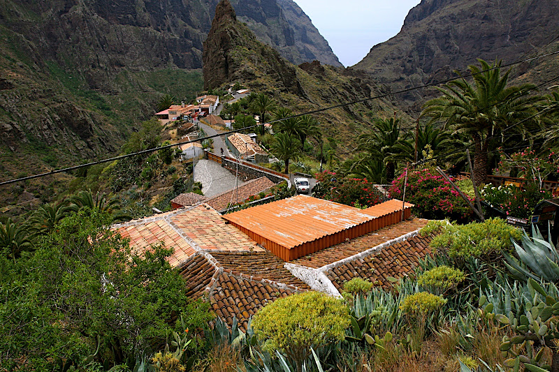 Из рассказа Krunы я определила маршрут, по которому мы должны были поехать: на машине до Лос Гигантеса, оттуда на такси до Маски, спуск вниз, на корабле до Лос Гигантеса, на машине домой. Я много рассказывала Андрею про Маску, а главное про спуск и зачитывала (еще в Москве) отзывы тех, кто спускался и даже поднимался. С собой на Тенерифе я взяла распечатки отзывов, и один попался Андрею, в котором красочно были описаны «опасные прелести» спуска, советы о необходимости правильной обуви и т.п. И не смотря на то, что все отзывы заканчивались типа: «Ура! Мы это сделали», Андрей предложил на месте решить, спускаться или нет. Поэтому план изменился - мы поехали сразу в деревню, а не в Лос Гигантес.