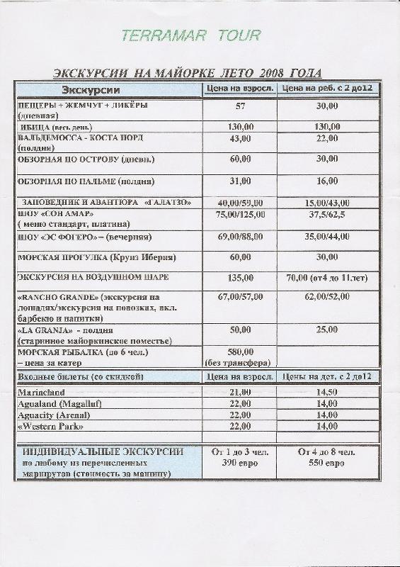 Посмотрите цены на экскурсии по Майорке на лето 2008 года