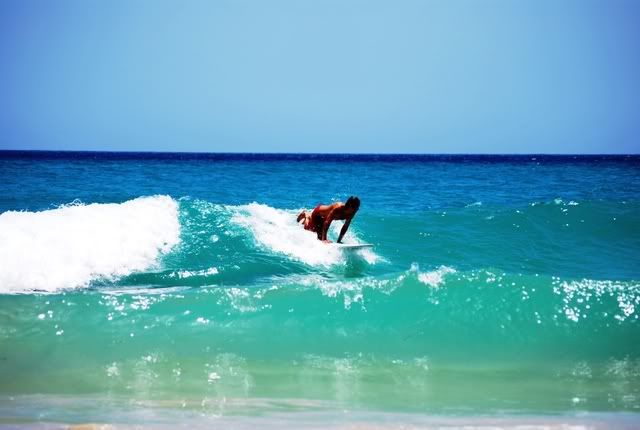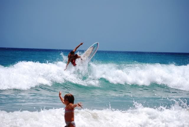 Пляж Кофете. Моей дочери он так понравился, что пришлось возвращаться второй раз сюда. А мне было там страшновато. Все боялась, что волны лишь притворяются мирными.  Эх, Прокати меня волна!  Дяденька, вот так держись, вот так!  Пляж в странной деревне Botihondo. Едешь себе по указателям, раз и дорога заканчивается  Хотя там стройки идут, может поэтому перекрыли.  Пляж в деревушке Ginginamar. Веселенькое место.. все приветствуют, машину пытаются остановить.. То ли праздник у них, то ли так принято, но все "под шафе"