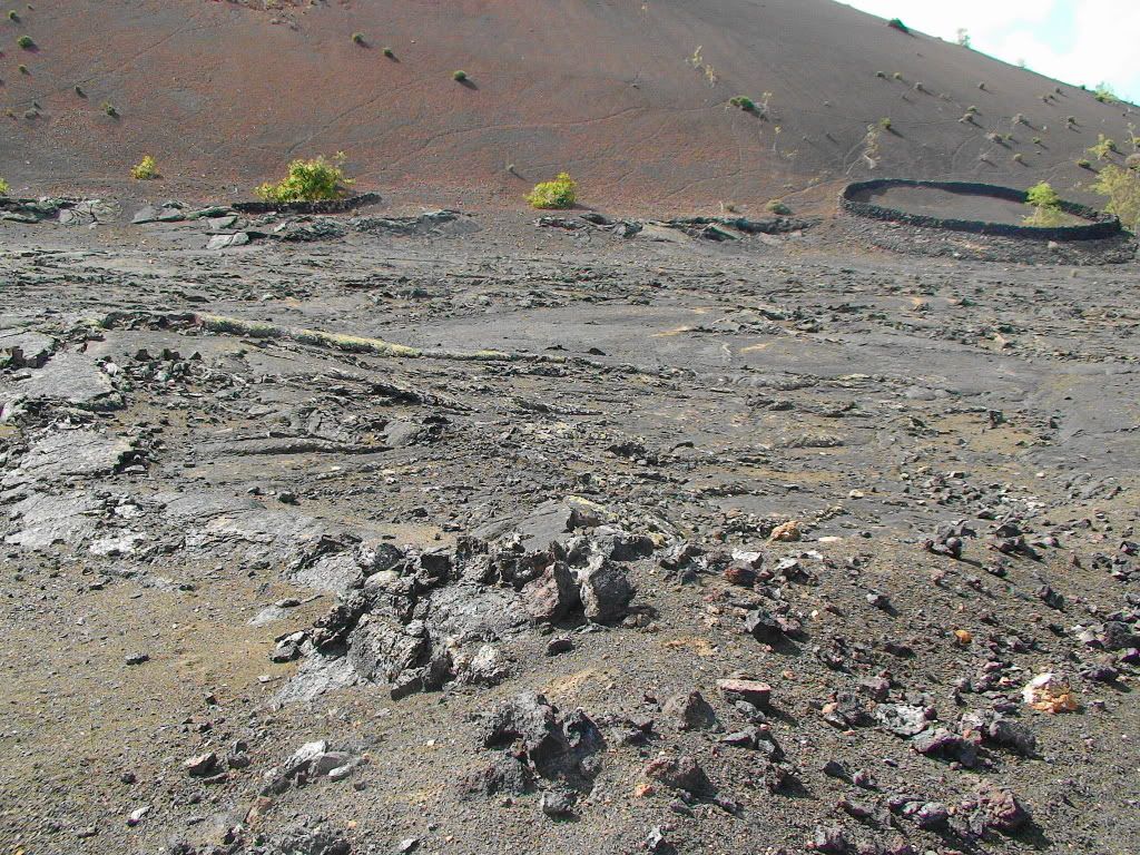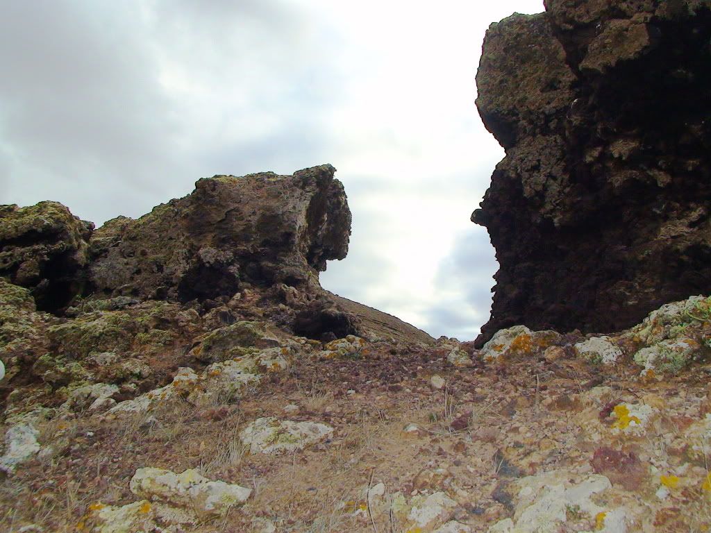 Где эта улица, где этот дом...Прочитав в своё время рассказы Александра и Натальи о древней обсерватории, её "окнах" и фигурах, выложенных в кратере бывшего вулкана, мне тоже захотелось там побывать. Вулкан, название которого я позабыл, солидаризируясь с предыдущими рассказчиками, находится недалеко от скромного посёлка также с очень трудновыговариваемым для меня названием. Пройдя через весь населённый пункт, в котором из достопримечательностей могу отметить лишь местную церквушку, огород с замечательными тыквами и видом на наш вулкан да местных собак, исправно и трудолюбиво облаивавших нас всю дорогу (чужие здесь не ходят), мы стали потихоньку приближаться к наиболее пологому склону вулкана для восхождения.  Забегая вперёд, скажу, что сам подъём к основному "окну" не сложный, по времени минут 20. Первая линия обороны  Основное мистическое "окно"  Что меня удивило, так это весьма отчётливо протоптанные тропинки к основному "окну", особенно на последнем участке от кратера до самого "окна"... Сооружения из камней в кратере