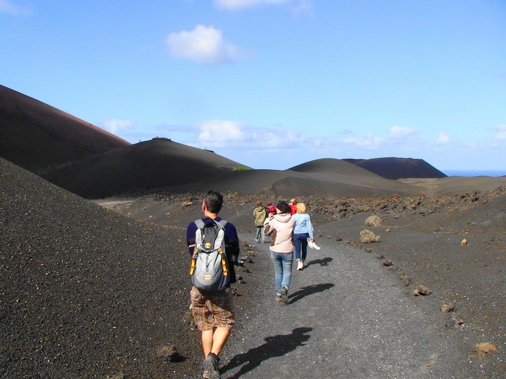 Пешком по ТиманфайеНам очень понравился пешеходный маршрут "Termesana route" в англоязычной группе из 8-ми человек вместе с гидом, проводимый сотрудниками национального парка. Спасибо Наталье-LNat(е) за предоставленную информацию о проведении подобного маршрута в её замечательном рассказе о Лансароте. Записывались по интернету примерно за месяц до предполагаемой даты, мест уже практически не было. Перед началом маршрута надо предъявить документы, удостоверяющие личность и расписаться, что вся ответственность в случае чего лежит на вас. Маршрут очень лёгкий, не кольцевой, по окраине нац. парка Тиманфайя рядом с вулканом Termesana. Из Центра Посещений практически одновременно на бусиках выезжают две группы - испаноговорящая и англоязычная. Начало маршрута у них в разных точках, по пути они пересекаются, а гиды обмениваются ключами от авто. Нашим проводником, гидом, интересным собеседником, коренным лансаротцем с отличным чувством юмора был Nino - человек, слушающий и слышащий Лансароте, связанный с ним особыми нитями, исходивший пешком почти весь остров. Его брат живёт на Тенерифе и приезжая туда в гости, Nino чувствует себя слегка неуютно. "Там очень шумно" - говорил он мне, улыбаясь..."могу жить только в кальдере"... Мне было приятно рассказать Nino о наших походах по Фуэрте и Тенерифе, о уже совершённых на Лансе и посоветоваться с ним о правильности прохождения пары грядущих маршрутов, в которых сомневался. Благодаря данному им совету я получил необходимые правильные корректировки. Спасибо тебе, Nino, за всё. По пути следования мы послушали рассказ о истории вулканизма в целом и на Лансароте конкретно, о типах лавы, о растительном и животном мире, в том числе о местных lavahopper-сах)). Да, мы также подпрыгивали на дороге и ощущали колебания не слишком толстого слоя лавы под ногами, залезали в лавовую пещеру, слушая жизнь острова в перекличке с голосом ветра и биением наших сердец. Рекомендую эту экскурсию всем заинтересованным в более тесном знакомстве с историей вулканизма на острове. P.S. язык, на котором проходит общение при движении по маршруту, желательно знать на приличном уровне, т.к. помимо просто рассказа-показа время от времени происходит живое общение. Несколько фото по маршруту