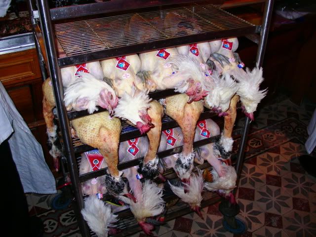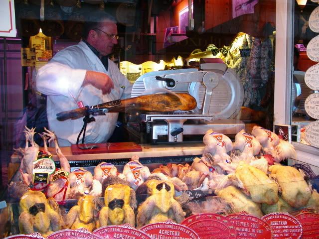 Первый не понравился ассортиментом, хотя и дешевле, а вот Казино оставил самые хорошие впечатления. А уж какие колоритные личности там работают, это что-то! Рыбным отделом заправляет дедок в кепке с большими усами. Точно рыбак из Марселя времен Наполеона. Он с таким достоинством и улыбкой встречает клиентов, бонжур мсьё, что хочется покупать только у него. Рядом прилавок с кулинарией, а за ним румяная шоколадная барышня в цветной гавайской одежде, с какими-то немыслимыми перьями и заколками на голове. Она постоянно веселится и громко включает музыку, что задорные карибские мелодии слышны при входе в маркет. Все отлично в нем. Кроме цен. Последние, если не шокируют, то большой радости не вызывают. Все овощи по 2-3 евро за кг, молоко 1,8 за литр, куры по 5-6. Сразу с грустью вспоминаю Испанию. Но за то какие это куры! С ними у нас приключилась забавная история. Как-то, гуляя по острову Сан Луи, мы наткнулись на мясную лавку (напротив Бертильон). Мясник настолько мастерски орудовал огроменным топором, а мясо на прилавках показалось таким аппетитным, что мы не устояли и соблазнились свежей курочкой, дабы сварить отменный суп.