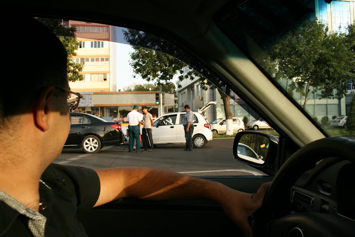 Узбекское ДТП. Вездесущий Матис из рода Дэу поцеловал Эпику из рода Шевроле, покровителей рода Дэу, в попу. Эротика. Черт! Оля, больше не надо всяких там секси-коллажей.  Полиция и ГАИ в Узбекистане, как вы видите, зелененькие. Типа такие маленькие зелененькие человечки во французских жандармских фуражках.