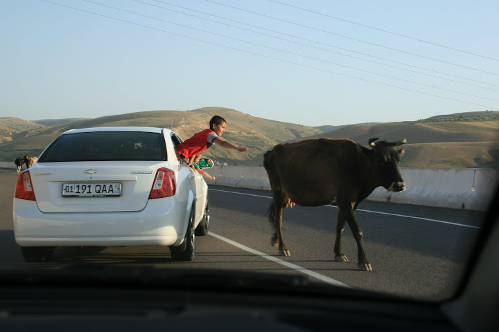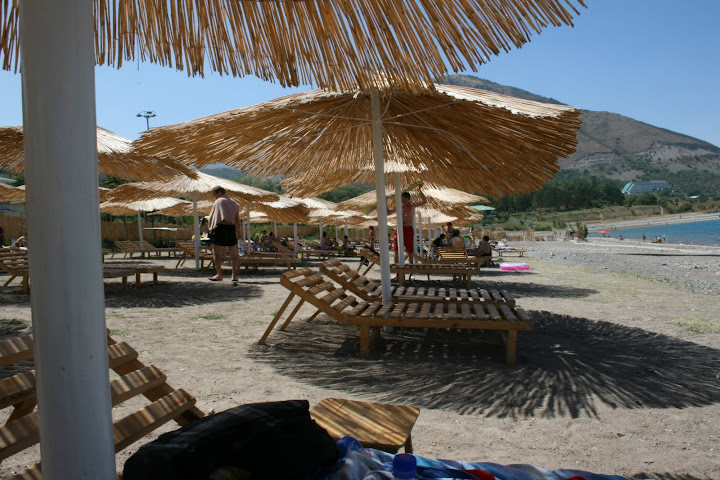 Ну и это вы уже наверное видели. Это узбекский Дюк на Чарваке. Вполне полноценный пляж за, насколько я помню, 2 доллара с носа.  Там на воде есть катер, водный лисапед, банан и гидроцикл. Ну и вообще там плавают всякие посудины. Но когда Каримов приезжает отдыхать на свою дачу, то любым плавательным средствам запрещено плавать.